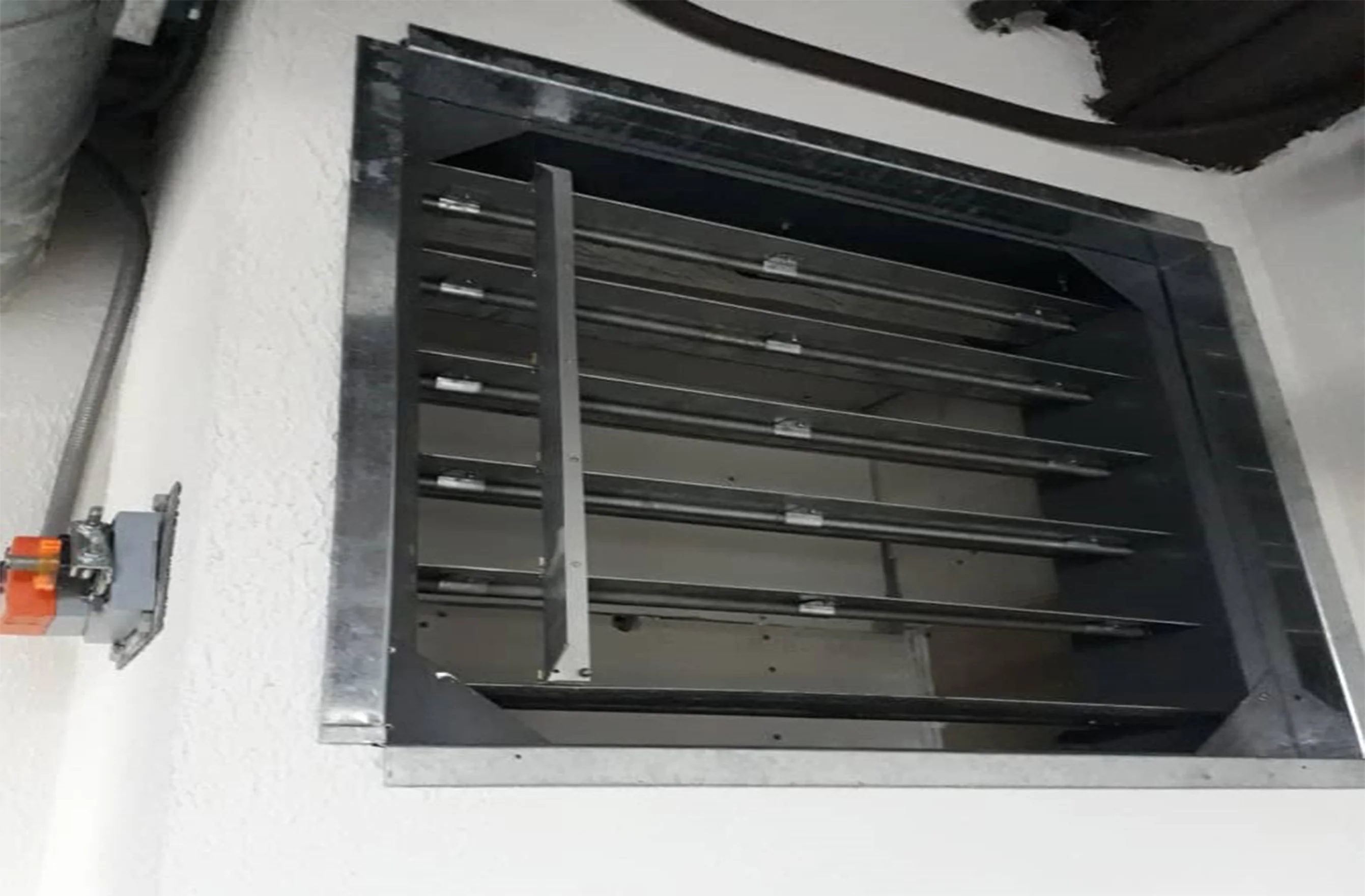 Intraca desarrolló un sistema de suministro y extracción de aire para una capacidad de 2000 CFM utilizando 2 compuertas de suministro de aire y 1 compuerta de extracción de aire accionadas por motores eléctricos conectados al sistema de emergencia contra incendios.